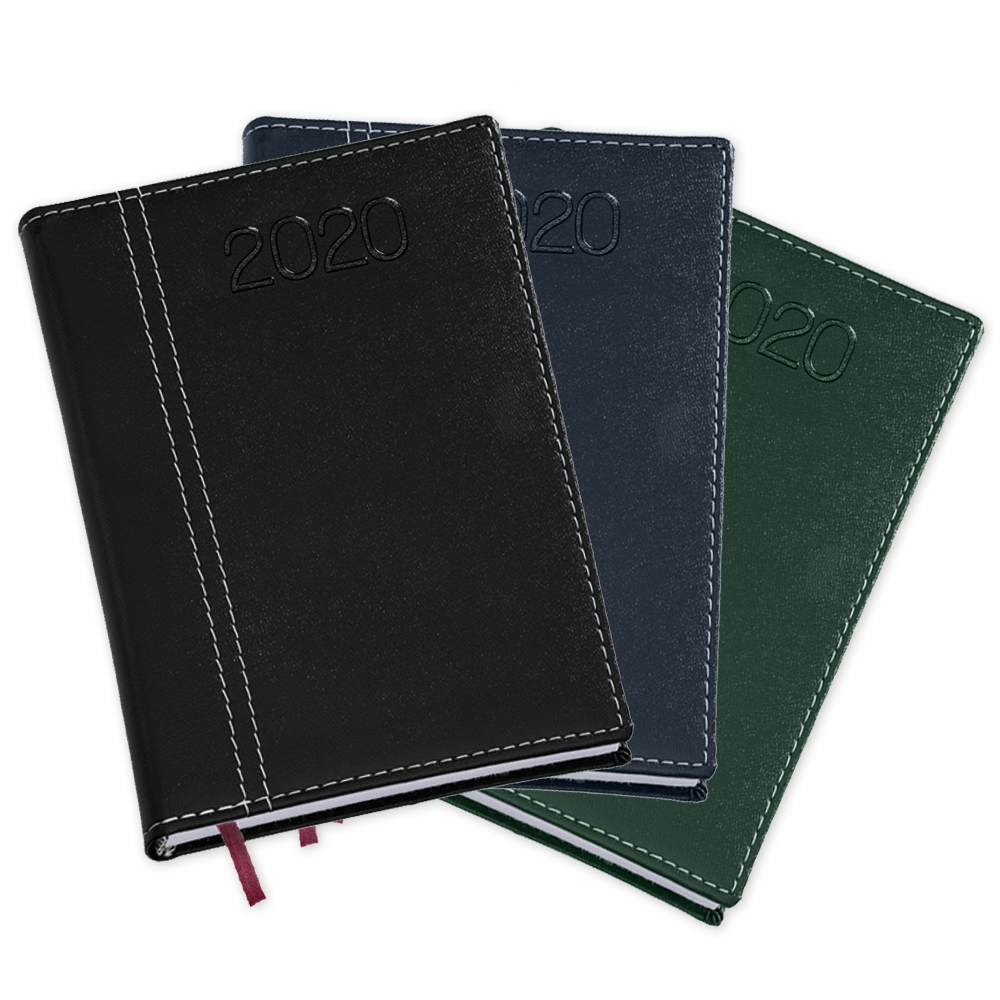 Agenda diária 2020 de couro sintético. Contém fita de cetim marca página, dados pessoais, calendário de 2019 à 2021, mapa do Brasil, mapa global, índice telefônico e planejamento.