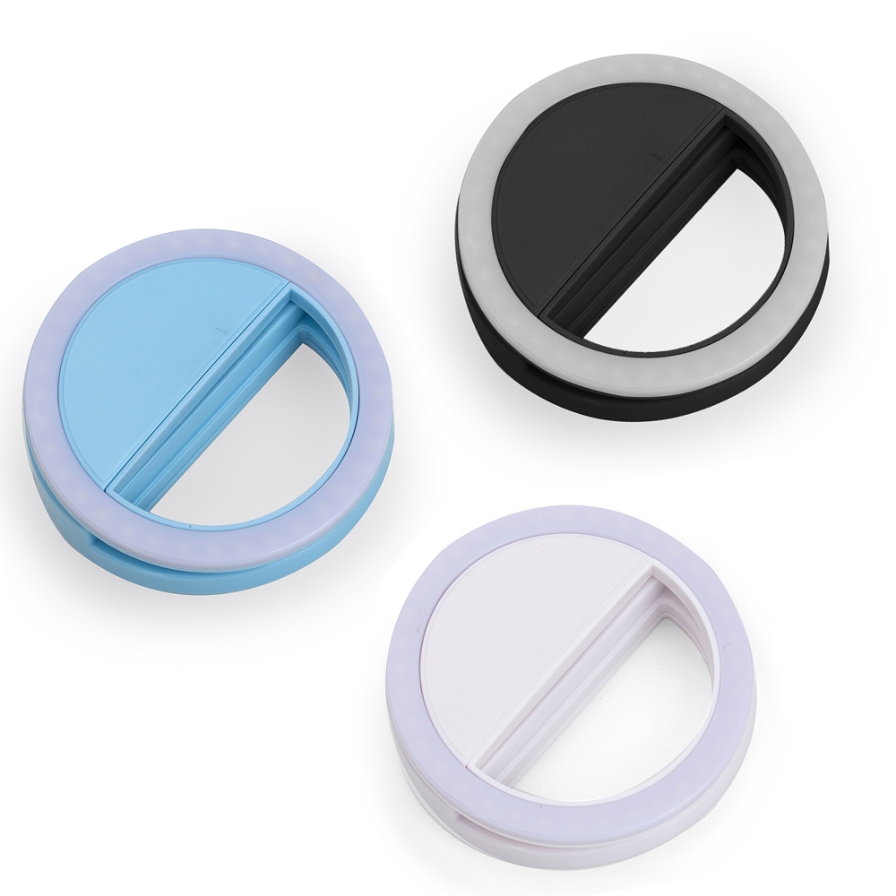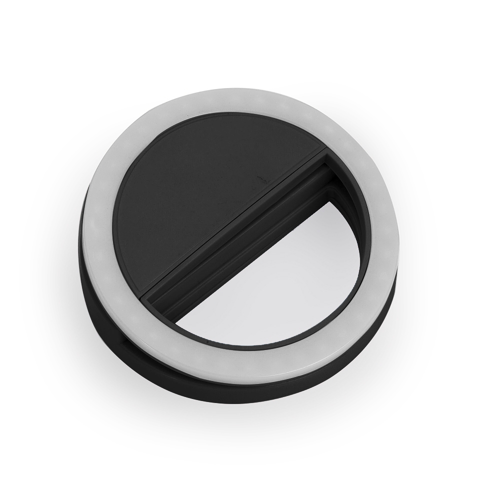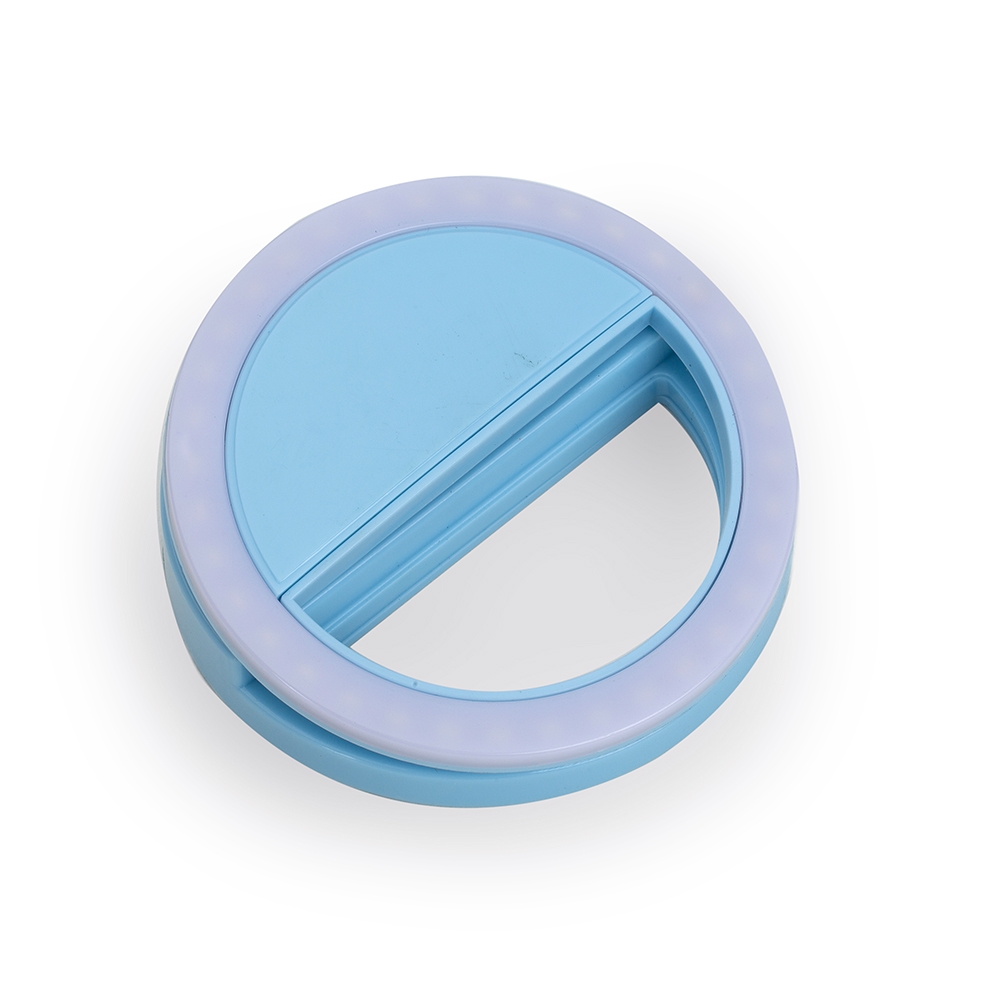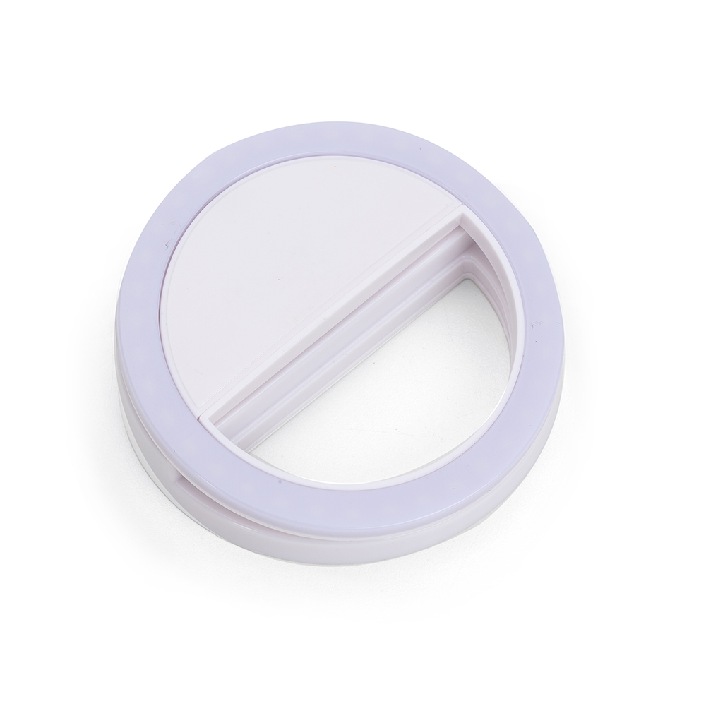 Anel de iluminação para celular, utilizado para fotos em formato selfie. “Ring light” plástico no formato “presilha” para encaixe, possui três estágios de iluminação acionados pelo botão superior. Utiliza duas pilhas tamanho AAA(não acompanha).