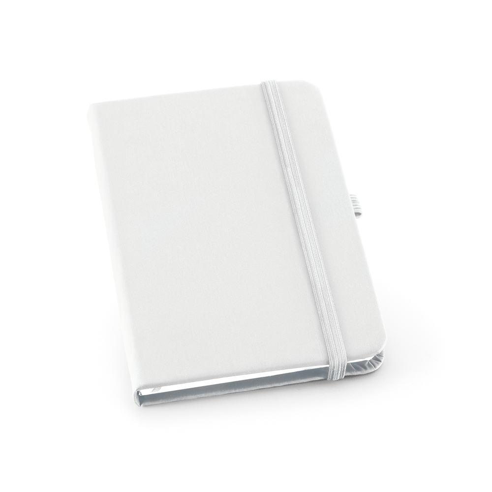 Caderno capa dura. C. sintético. Com porta esferográfica e 80 folhas não pautadas.