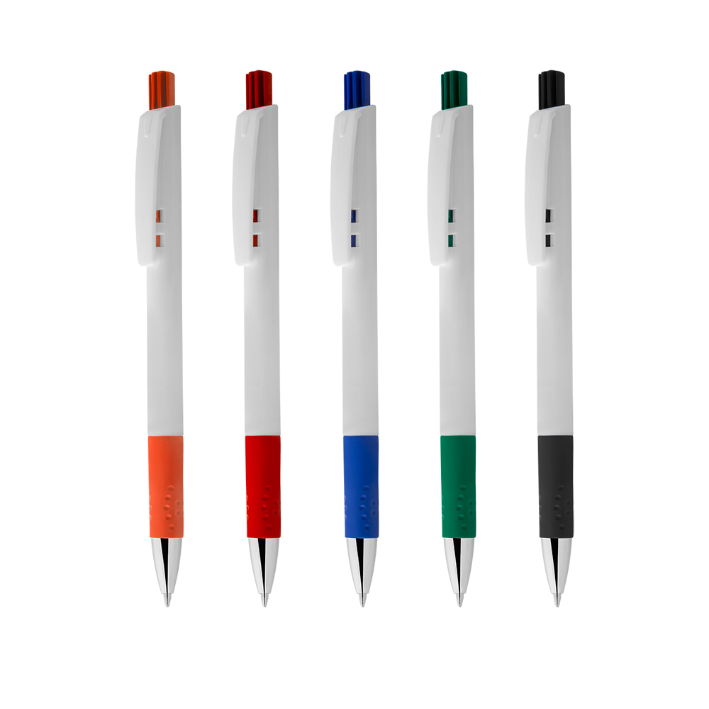 Caneta plástica com grip esferográfica retrátil escrita em azul