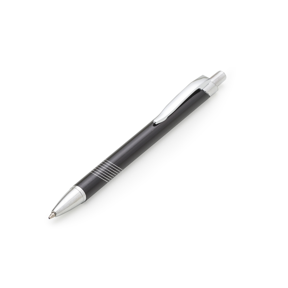 Caneta semi-metal inteira colorida com detalhes prata. Clip metal e oito anéis ondulados na parte inferior. Aciona por clique. PEDIDO APENAS MÚLTIPLO DE 50 PEÇAS!