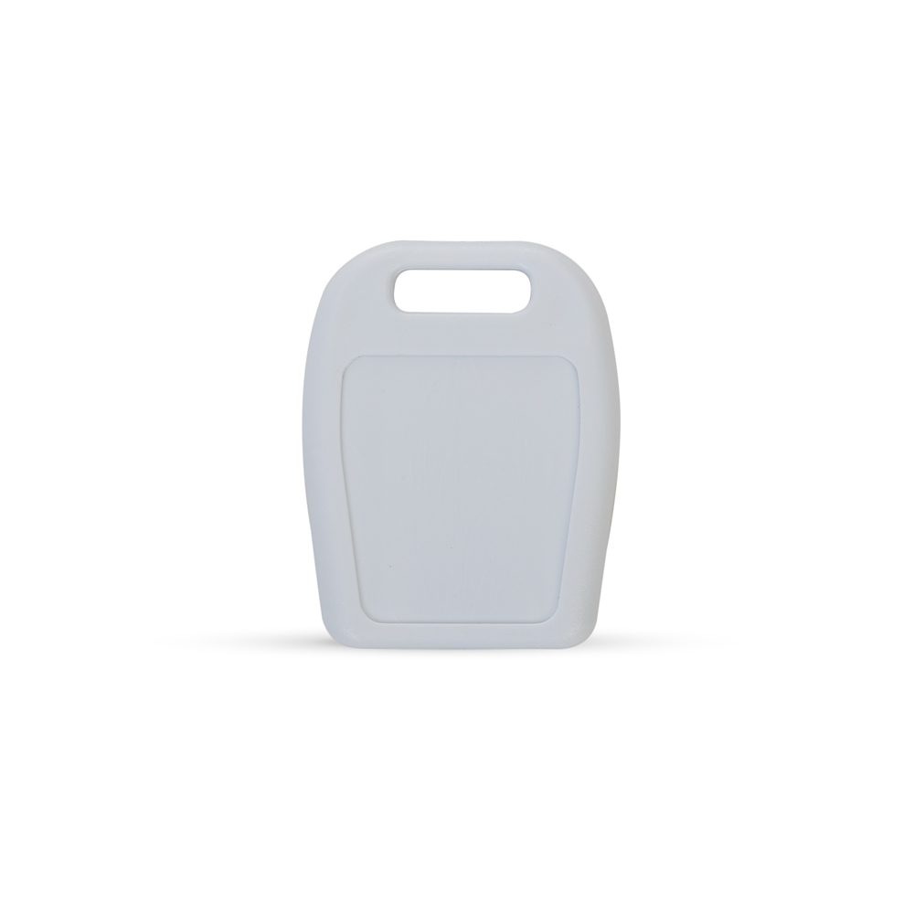 Carcaça retrátil plástica para memória COB. Possui parte superior vazada para encaixe de cordão/argola, botão/acionar colorido e verso com área lisa.