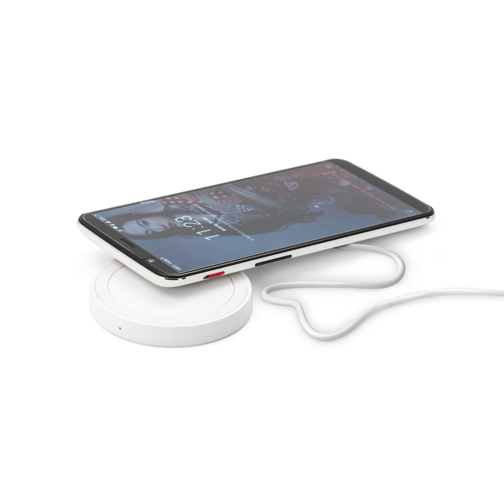Carregador wireless fast. ABS e silicone. Com entrada 5V/2A e 9V/1.67A e potência de carregamento 5W, 7.5W e 10W. Incluso cabo USB/micro USB para carregar. Compatível com smartphones com tecnologia de carregamento sem fios. Fornecido em caixa presente.