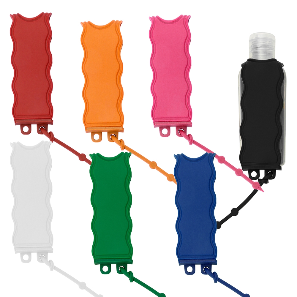 Chaveiro porta álcool gel, material emborrachado com capacidade para frasco de 60ml.