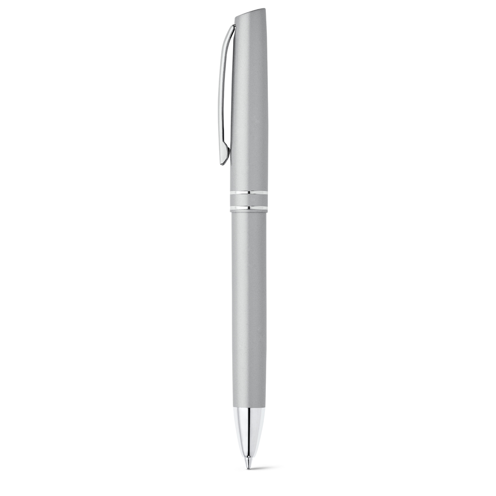 Conjunto de roller e esferográfica. Alumínio. Esferográfica: 1,5km de escrita. Em estojo almofadado.
