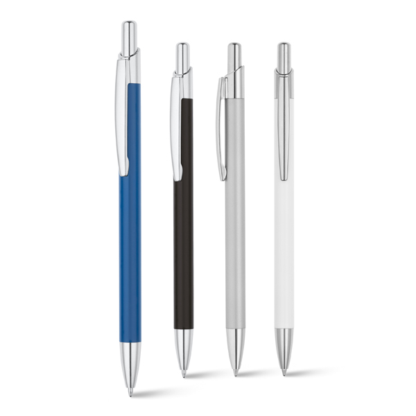Esferográfica. Alumínio. Clipe de metal. 1,5km de escrita.