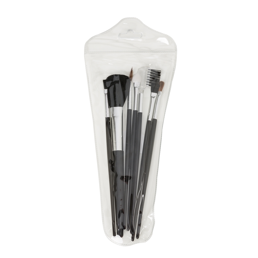 Kit pincel com 7 peças em estojo plástico. Possui pincel para delineado, pincel aplicador de sombra, pincel para sombra, pincel para marcação, pincel para esfumar, pincel pente sobrancelha e pincel para blush.
