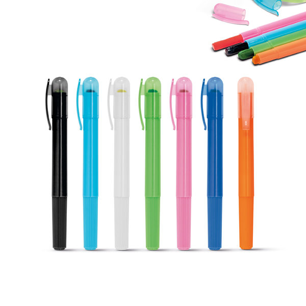 Marca texto. PP. Cor da escrita à cor do produto. Cores 03 e 06: escrita a amarelo.