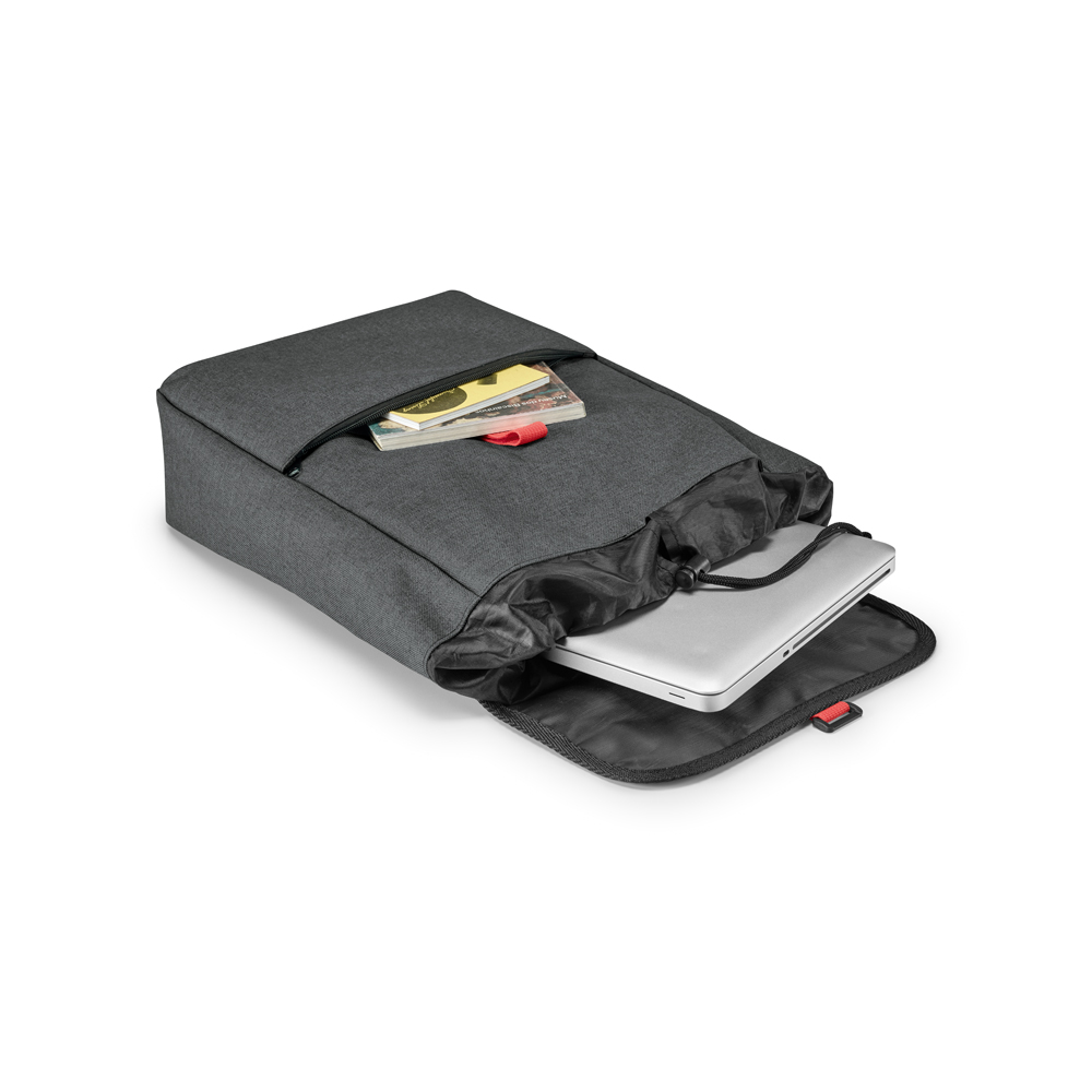 "Mochila para notebook. 600D de alta densidade. Compartimento principal com divisória almofadada para notebook até 15.6"". Bolso frontal com zíper. Parte posterior e alças almofadadas."
