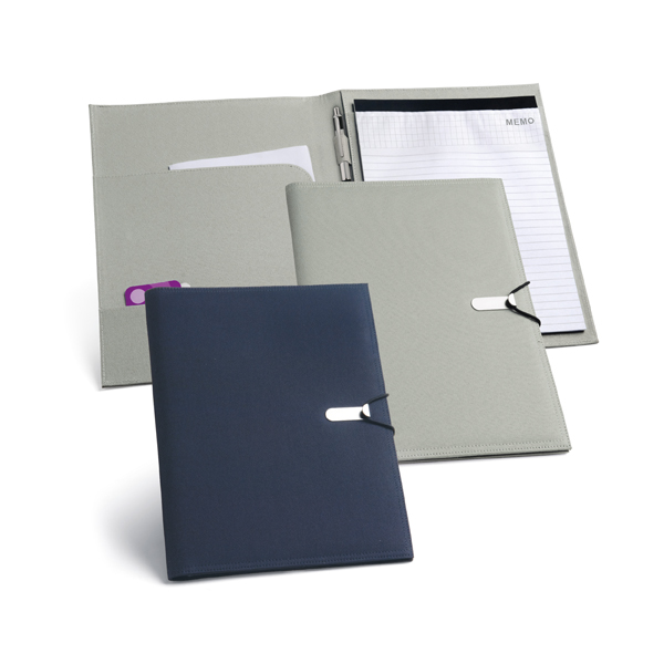 Pasta A4. 600D. Bloco: 20 folhas pautadas. Esferográfica não inclusa.