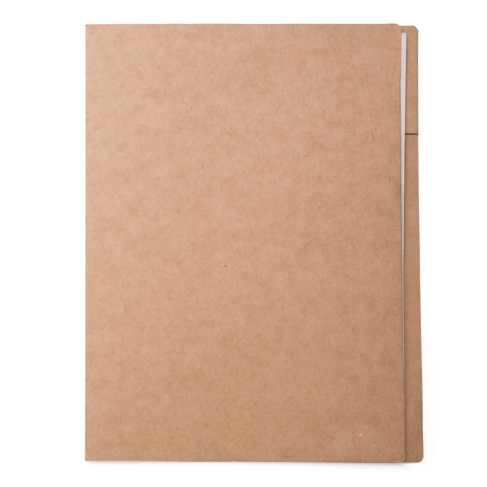 Pasta convenção em kraft de frente e verso liso. Abertura lateral, possui bolso interno e acompanha 25 folhas ecológicas de tamanho A4.