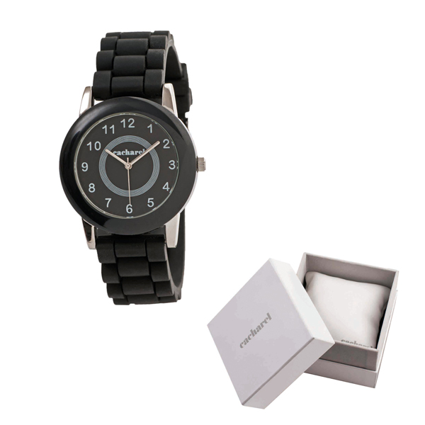 Relógio. Pulseira em borracha. Resistência à água: 3 ATM. Pilha SR626SW inclusa. Fornecido em caixa de oferta.